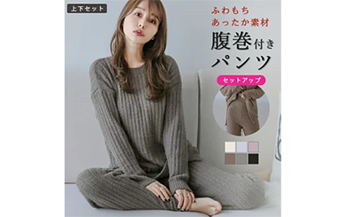 【半額クーポン対象】【奇跡の再販】リブニット トップス ボトムス セット パジャマ ルームウェア もこもこ 腹巻 リブモール ニット レディース 2024秋冬新作 【ase305-790】【予約販売:(1)11月14日/(2)11月21日入荷予定順次発送】【送料無料】宅込